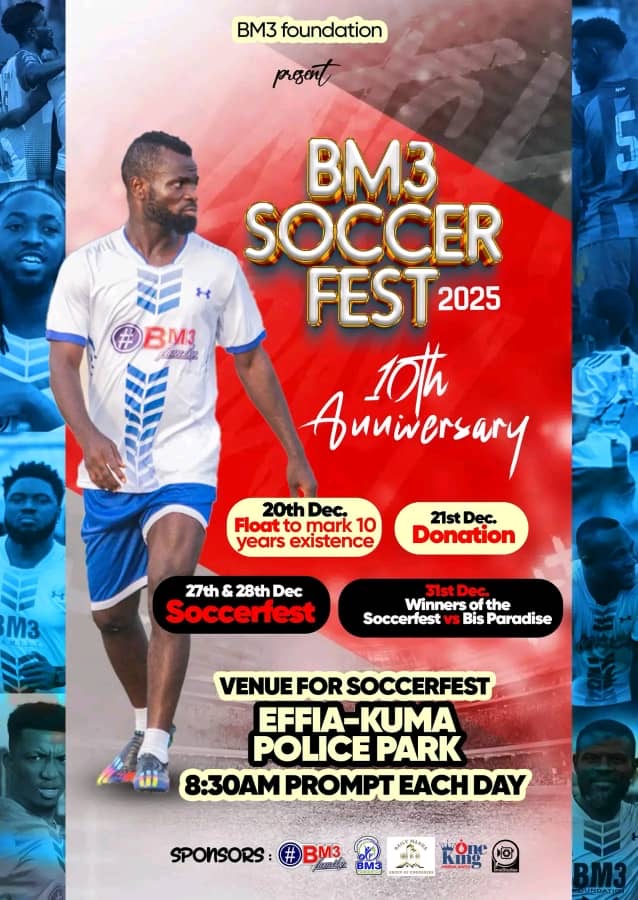 As part of the registration process, each participating club is required to purchase four (4) BM3 jerseys, priced at GHS 150 each. Proceeds from the jersey sales will go directly toward supporting the BM3 Foundation’s charitable activities and preparations for the Soccer Fest.